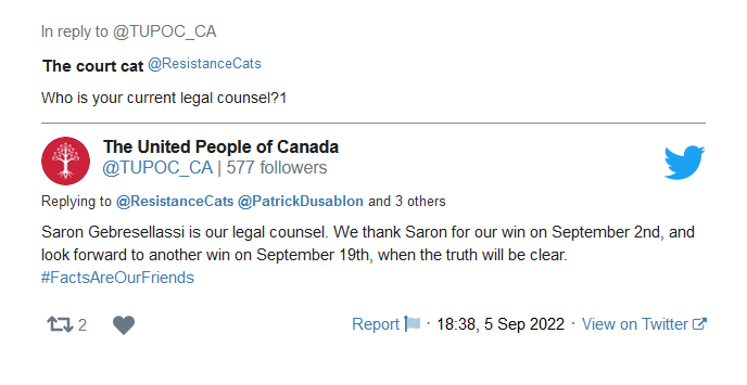 Saron is deep in the convoy/freedom movement and all of the resulting disinformation and hate that comes with said movement. Saron is a lawyer for The United People of Canada (TUPOC), the convoy/freedom group that squatted in a deconsecrated church in Ottawa until they were finally evicted from the former St. Brigid’s.