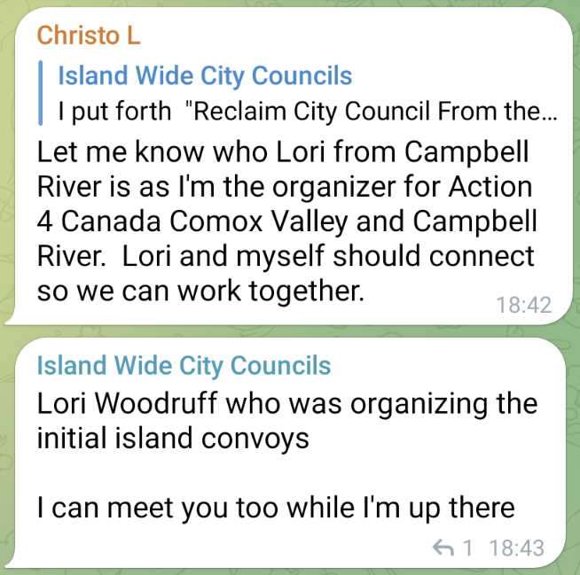 Saron was allegedly nominated by Lori Woodruff, an early organizer in the Campbell River convoy/freedom movement.