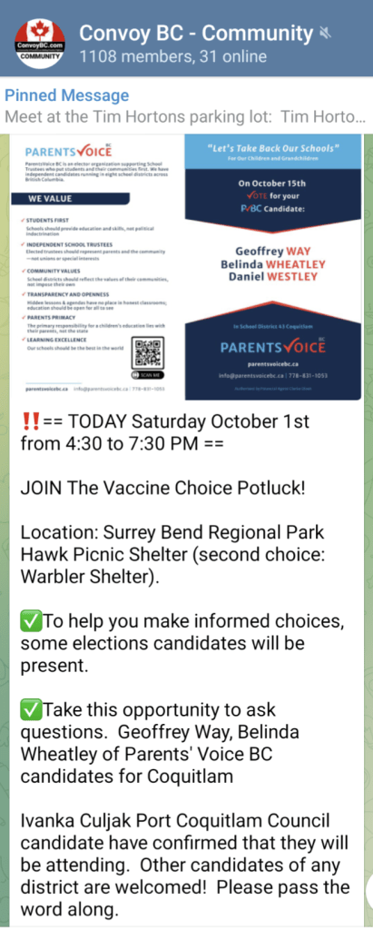 Parents Voice BC is a social conservative party that shelters anti-SOGI 123 activists, transphobia, religious fundamentalism, the convoy/freedom movement, and COVID-related conspiracy theories. Parents Voice BC is recommended by Action4Canada.