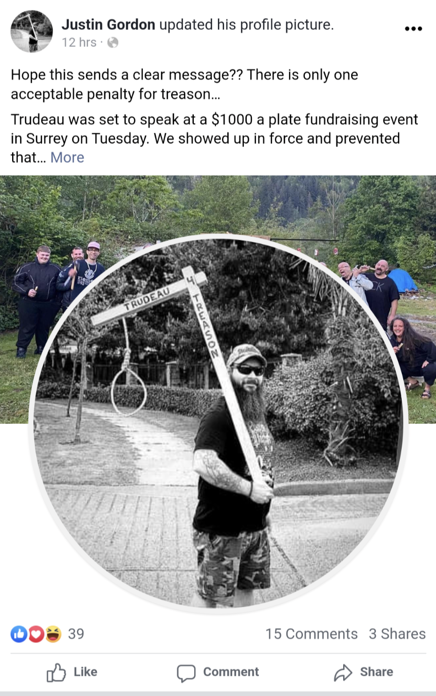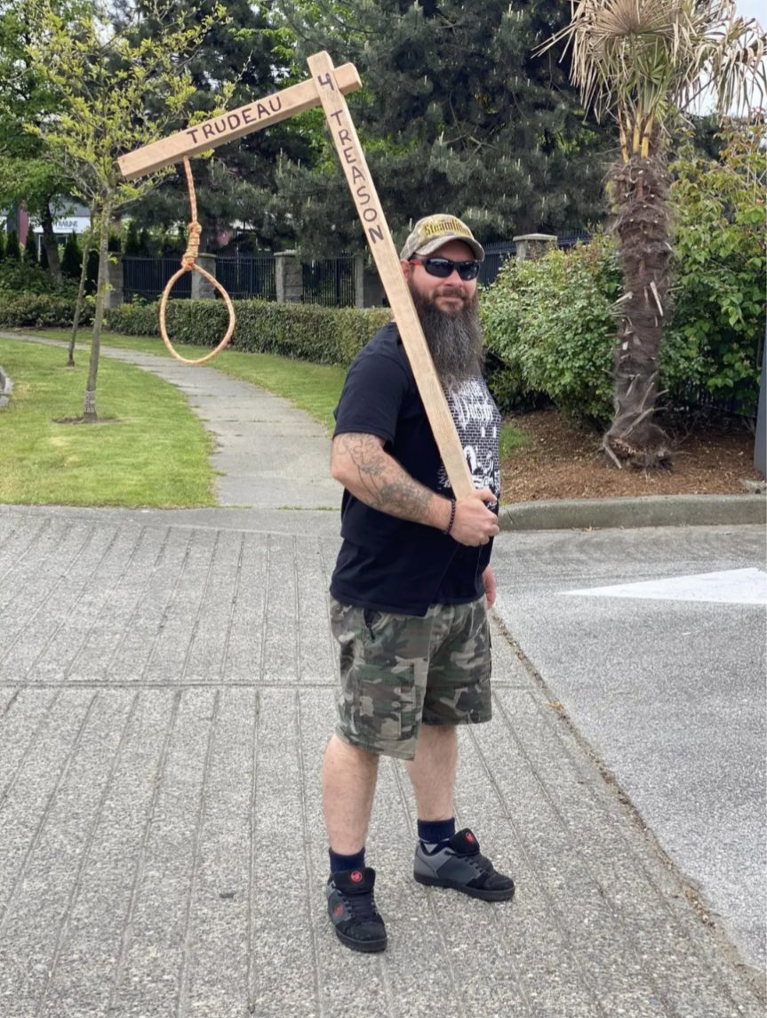 The Doctors on Tour doctors are now Justice for the Vaccinated, which is ending their current tour on October 7, 2022 at a Stand United event meant to harass the BC College of Physicians and Surgeons where Maxime Bernier is the guest speaker. You know Stand United thanks to their Media is the Virus rally that terrorized downtown Vancouver on February 5, 2022. You also know them because Stand United crew member Justin Gordon wants to hang Prime Minister Trudeau (photo from an event on May 24, 2022).
