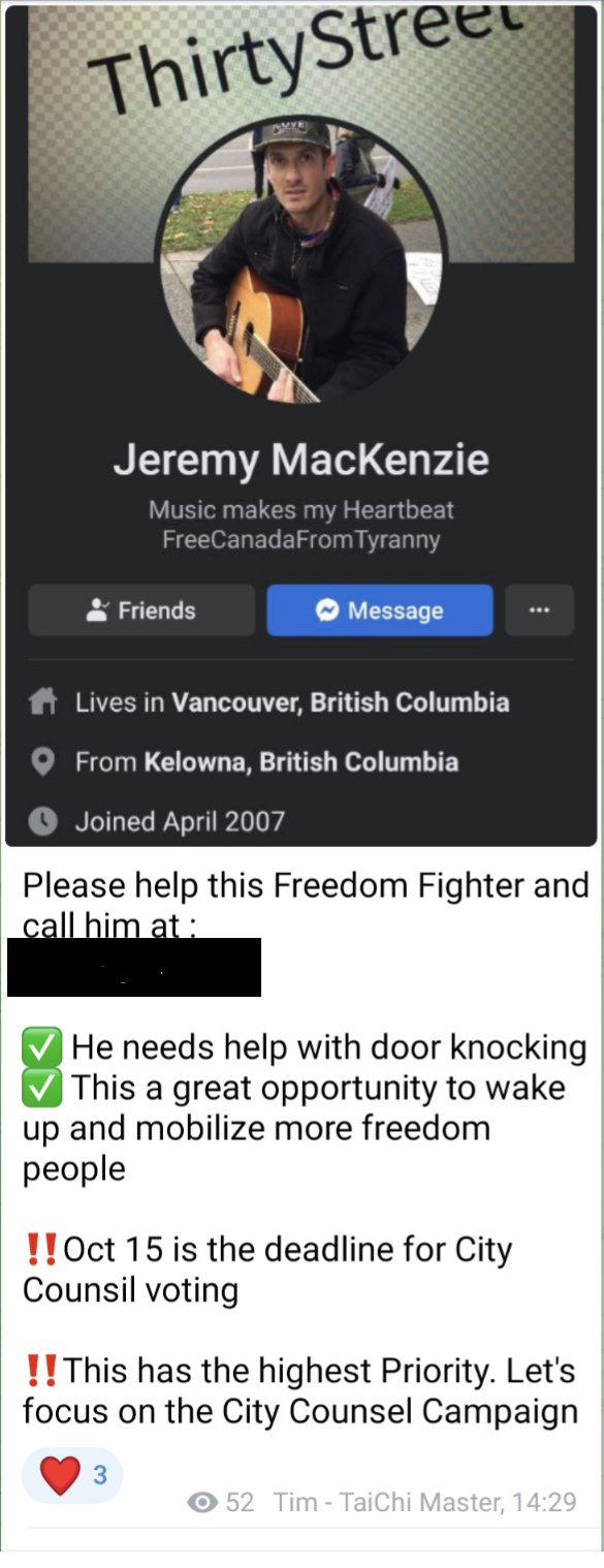 Jeremy is related to the violently anti-LGBTQ2S+ (also racist and pro-life) organization (which pivoted to COVID disinformation and conspiracies) Action4Canada.