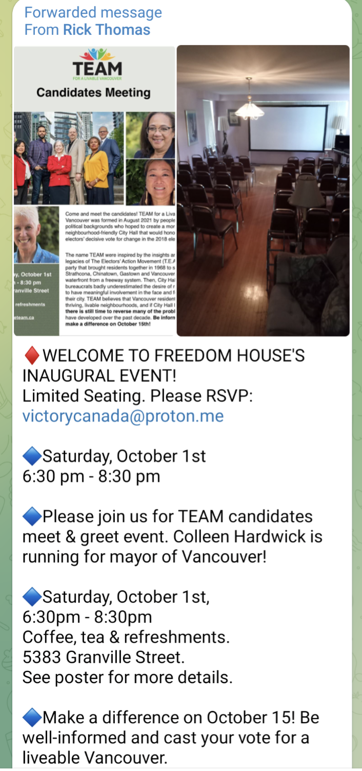 TEAM for a Livable Vancouver has been promoting itself through Victory Canada, a convoy/freedom groups that platforms some really awful people. They aren’t the only candidates on this list, but you can jump straight to Why Team →